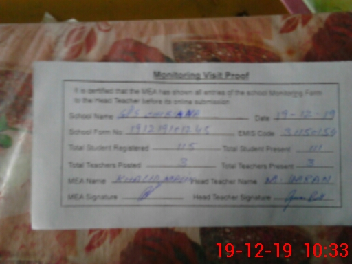 | Certified that this School was Inspected by the Undersigned MEA/DMO Today and the Information Stated Above is as Per Record. | |||||