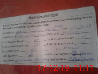 | Attendance Register | Head Teacher | MEA with School | Visit Proof |