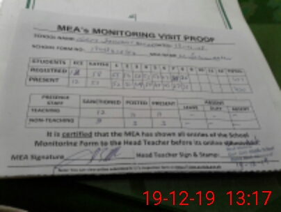 | Attendance Register | Head Teacher | MEA with School | Visit Proof |