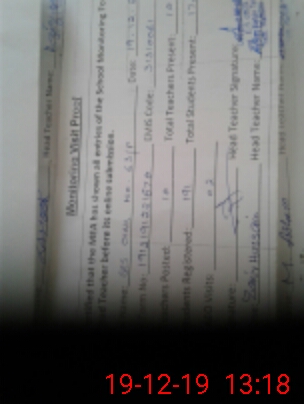 | Attendance Register | Head Teacher | MEA with School | Visit Proof |