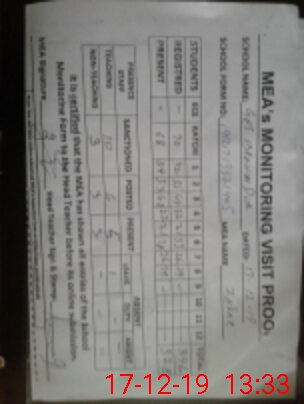 | Attendance Register | Head Teacher | MEA with School | Visit Proof |