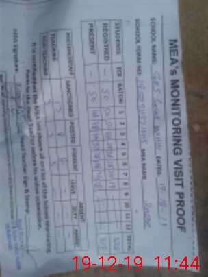 | Attendance Register | Head Teacher | MEA with School | Visit Proof |