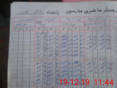 | CNIC | Full Name | Designation | R/C | Absence During Last Calender Month |