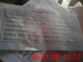 | Attendance Register | Head Teacher | MEA with School | Visit Proof |