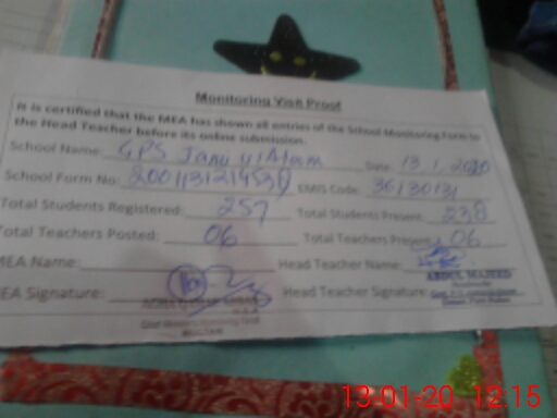 | EMIS Code: 36130131 | Name of School: GPS JAMI UL ALOOM DOULAT GATE MULTAN | |||