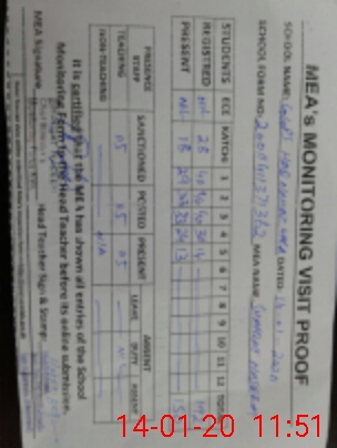 | Certified that this School was Inspected by the Undersigned MEA/DMO Today and the Information Stated Above is as Per Record. | |||||