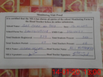 | EMIS Code: 39210047 | Name of School: GHS 90 D | |||