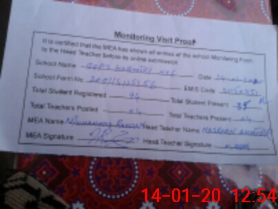 | Attendance Register | Head Teacher | MEA with School | Visit Proof |