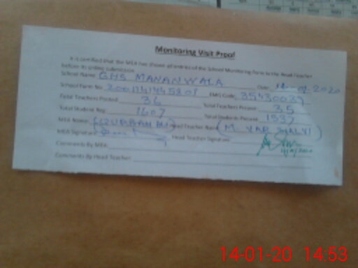 | Certified that this School was Inspected by the Undersigned MEA/DMO Today and the Information Stated Above is as Per Record. | |||||