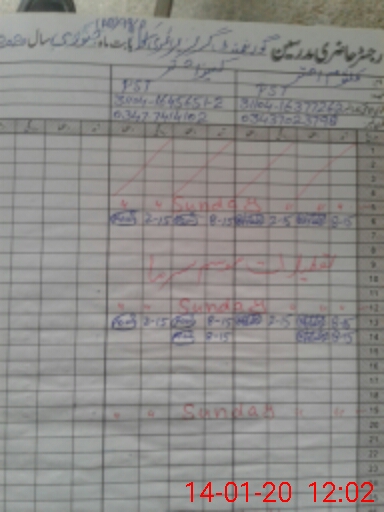 | CNIC | Full Name | Designation | R/C | Absence During Last Calender Month |