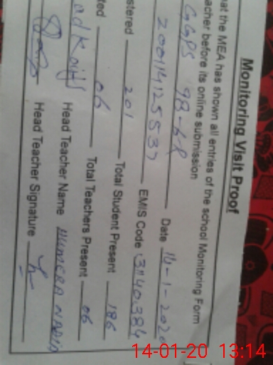 | EMIS Code: 31140384 | Name of School: GGPS CHAK 98/6-R | |||