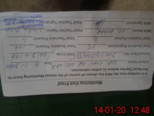 | Certified that this School was Inspected by the Undersigned MEA/DMO Today and the Information Stated Above is as Per Record. | |||||