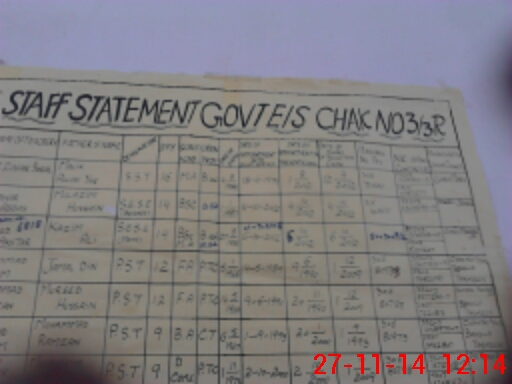 | EMIS Code: 33240119 | Name of School: GES CHAK NO. 3/3-R | |||