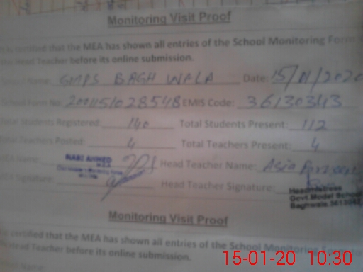 | EMIS Code: 36130343 | Name of School: GMPS BAGH WALA NEAR B Z UNIVERSITY | |||