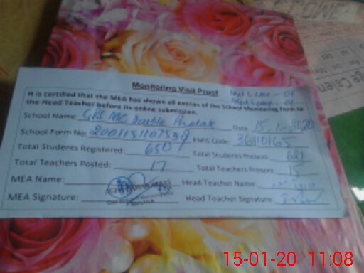 | Attendance Register | Head Teacher | MEA with School | Visit Proof |