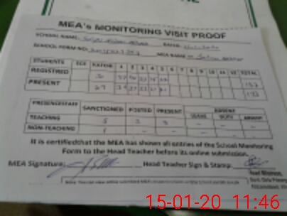 | Attendance Register | Head Teacher | MEA with School | Visit Proof |