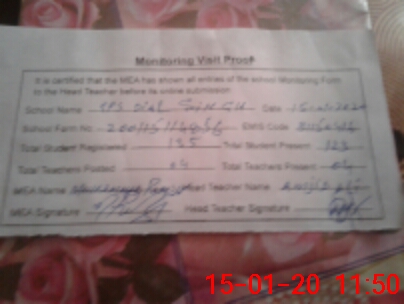 | Attendance Register | Head Teacher | MEA with School | Visit Proof |