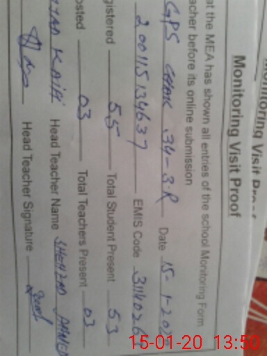 | Attendance Register | Head Teacher | MEA with School | Visit Proof |