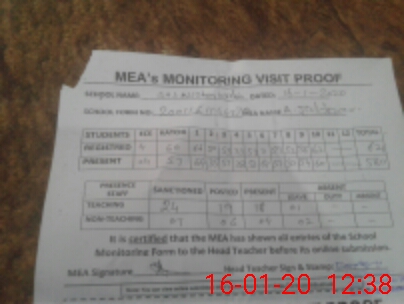 | Attendance Register | Head Teacher | MEA with School | Visit Proof |