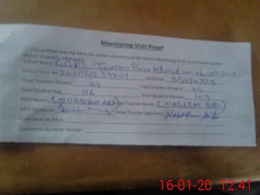 | Attendance Register | Head Teacher | MEA with School | Visit Proof |