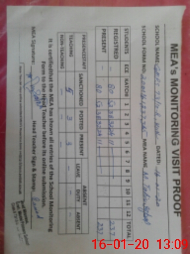 | Attendance Register | Head Teacher | MEA with School | Visit Proof |