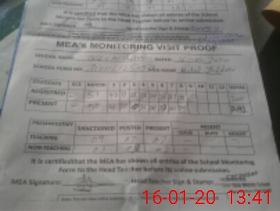 | Attendance Register | Head Teacher | MEA with School | Visit Proof |
