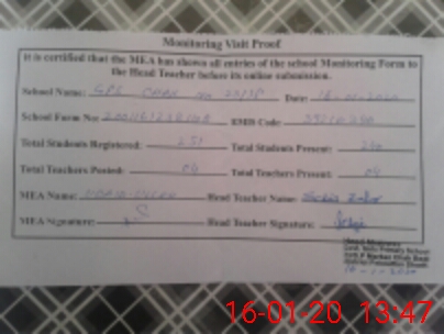 | Attendance Register | Head Teacher | MEA with School | Visit Proof |