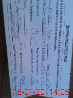 | Monitoring Date: 16-01-2020 | Start Time: 16-01-2020 01:24 PM | End Time: 16-01-2020 02:07 PM | Name of MEA: Za**** Ah**** | |