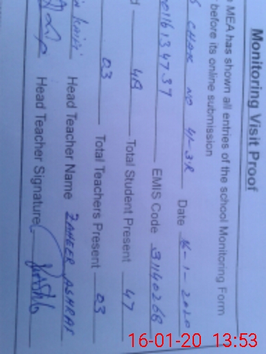 | Certified that this School was Inspected by the Undersigned MEA/DMO Today and the Information Stated Above is as Per Record. | |||||