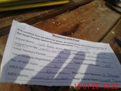 | Attendance Register | Head Teacher | MEA with School | Visit Proof |