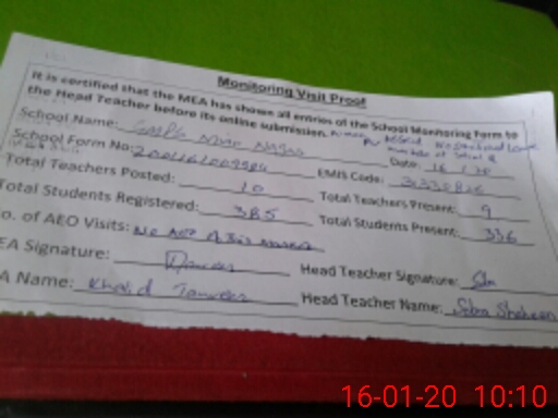 | Certified that this School was Inspected by the Undersigned MEA/DMO Today and the Information Stated Above is as Per Record. | |||||