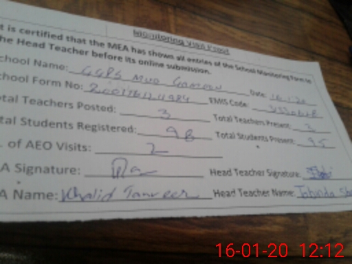 | Attendance Register | Head Teacher | MEA with School | Visit Proof |
