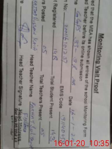 | Attendance Register | Head Teacher | MEA with School | Visit Proof |