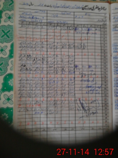 | CNIC | Full Name | Designation | R/C | Absence During Last Calender Month |
