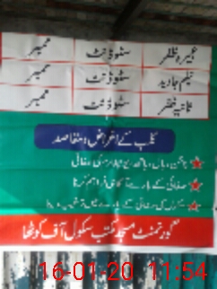 | Total no. of Classrooms: 1 No. of Classrooms Used for Teaching: 1 No. of Classrooms Storing Old Furniture, FTBs, etc: 0Comments if Any: School running at mosque |