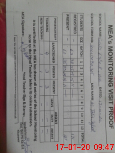 | Attendance Register | Head Teacher | MEA with School | Visit Proof |