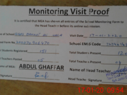 | EMIS Code: 32340161 | Name of School: GGPS BAKHAT ALI WALA | |||