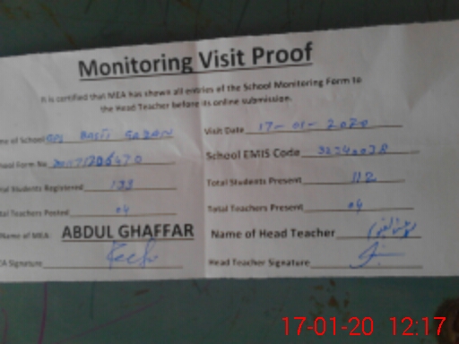 | EMIS Code: 32340038 | Name of School: GPS BASTI GHAZAN | |||