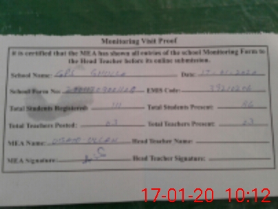 | Attendance Register | Head Teacher | MEA with School | Visit Proof |