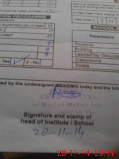 | Certified that this School was Inspected by the Undersigned MEA/DMO Today and the Information Stated Above is as Per Record. | |||||