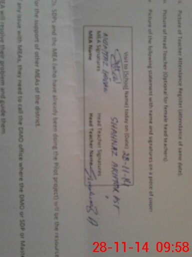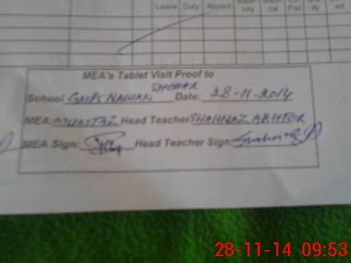 | Attendance Register | Head Teacher | MEA with School | Visit Proof |