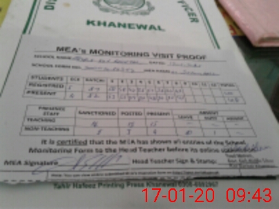 | Attendance Register | Head Teacher | MEA with School | Visit Proof |