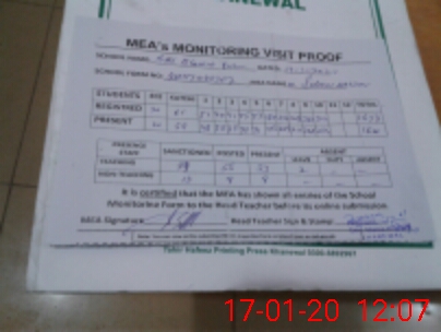 | Attendance Register | Head Teacher | MEA with School | Visit Proof |