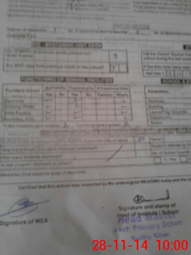 | Certified that this School was Inspected by the Undersigned MEA/DMO Today and the Information Stated Above is as Per Record. | |||||