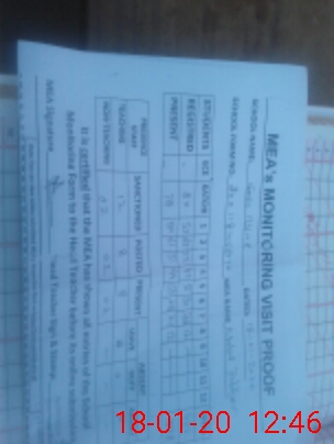 | Attendance Register | Head Teacher | MEA with School | Visit Proof |