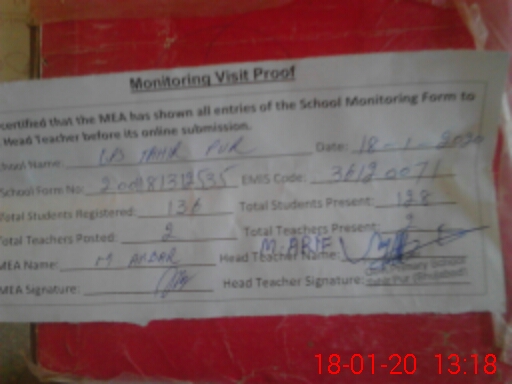 | EMIS Code: 36120071 | Name of School: GPS TAHIR PUR P/O & TEH.SHUJABAD | |||