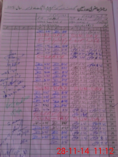 | CNIC | Full Name | Designation | R/C | Absence During Last Calender Month |