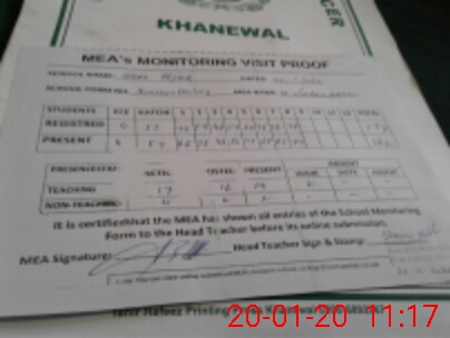 | Attendance Register | Head Teacher | MEA with School | Visit Proof |