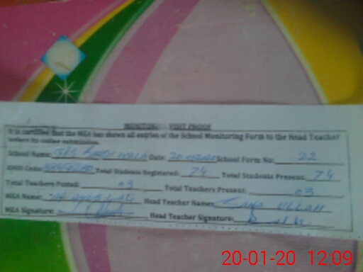 | Attendance Register | Head Teacher | MEA with School | Visit Proof |