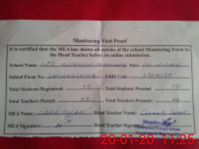 | Attendance Register | Head Teacher | MEA with School | Visit Proof |